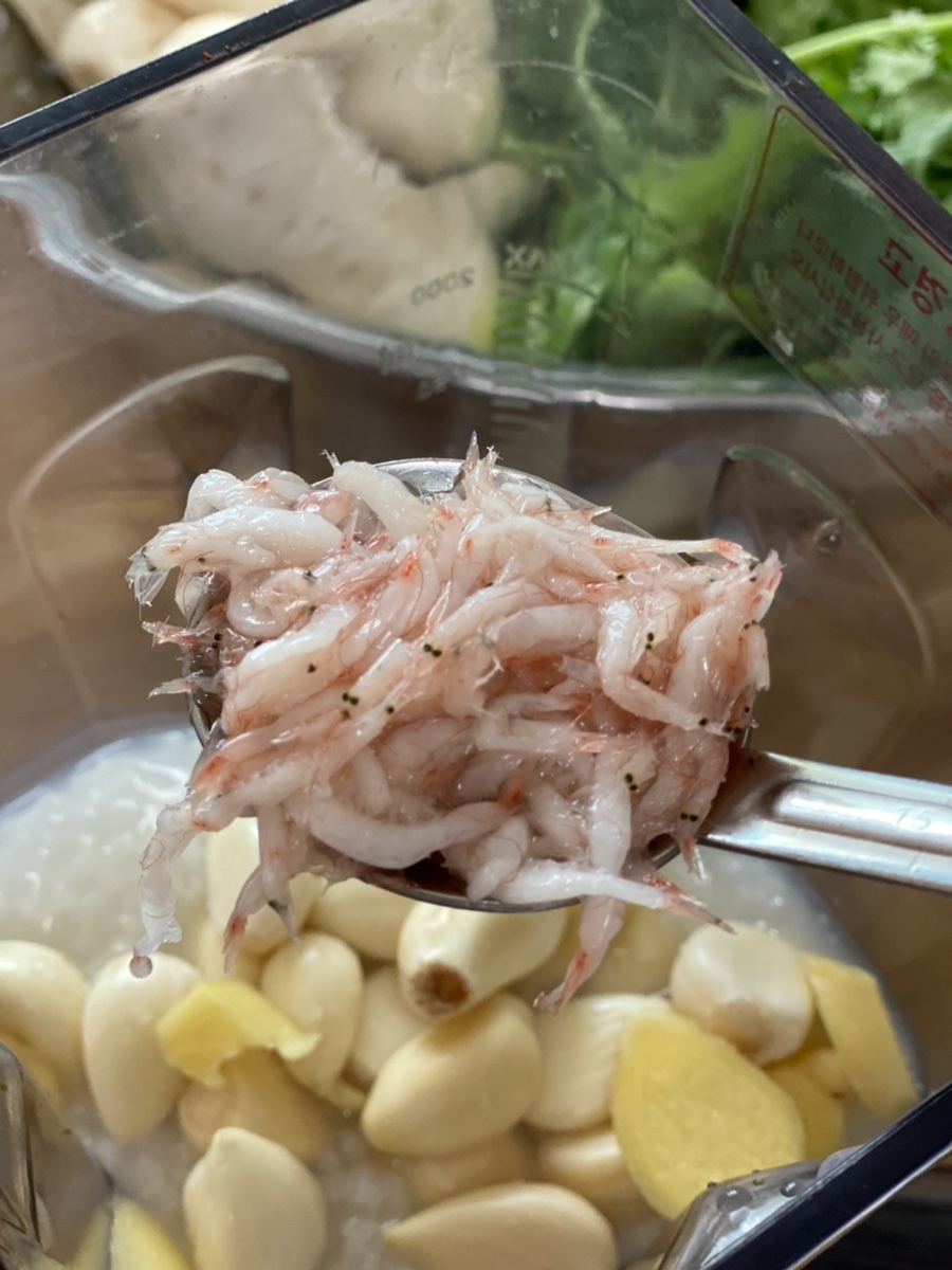 이때 간을 보고 싱거우면 새우젓과 소금을 더 넣어 간을 맞춰줍니다. 사과 때문에 단맛이 딱 맞던데요. 혹시 부족하면 설탕이나 사과농축액 매실청 등을 추가해주세요.