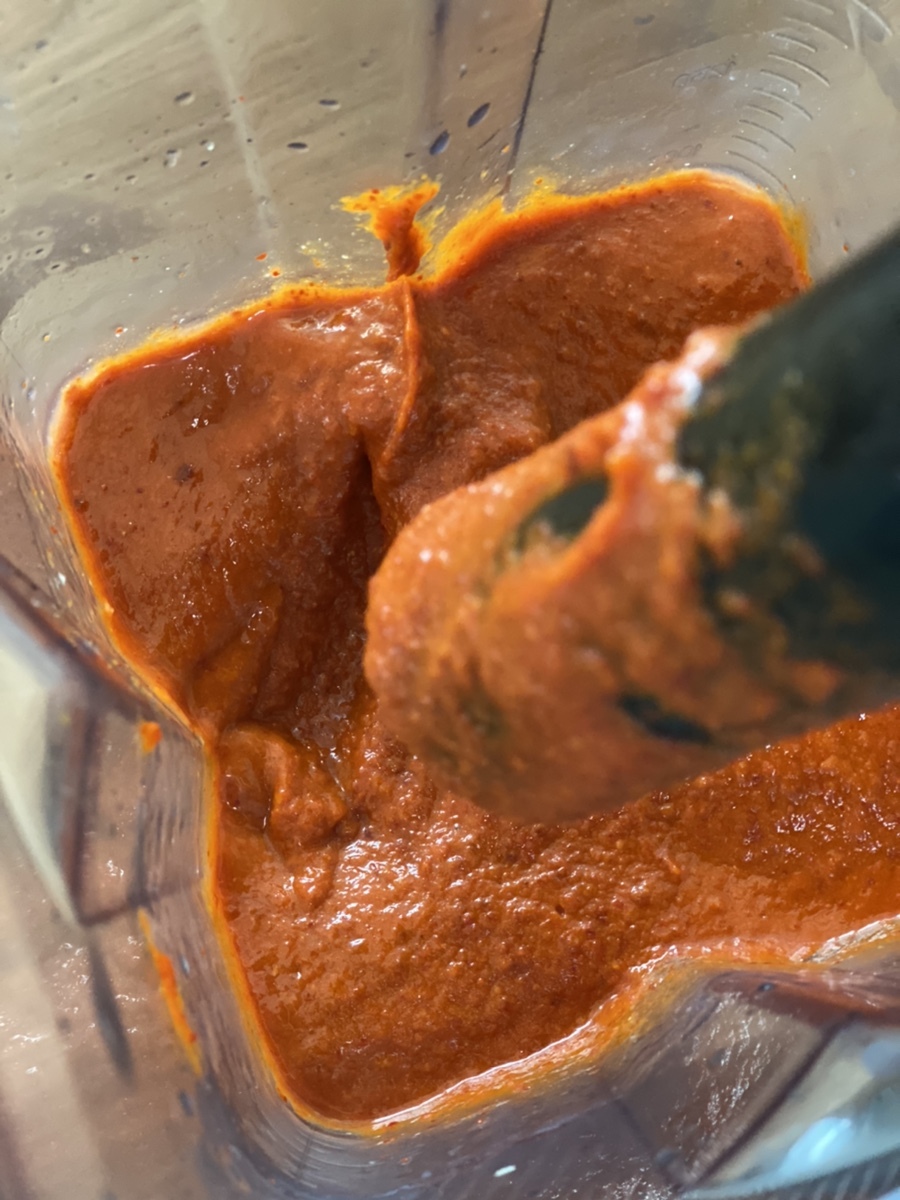 (이 과정에서 실수로 고추가루를 넣어버려서ㅋㅋ 떡볶이 양념같은 양념이 되었는데요. 생고추를 갈거나 마른고추 불린것이 아니라면 고추가루는 나중에 양념과 섞어주세요. 그래야 고추가루가 살아있어 예쁜 김치가 돼요 ㅋㅋㅋ )