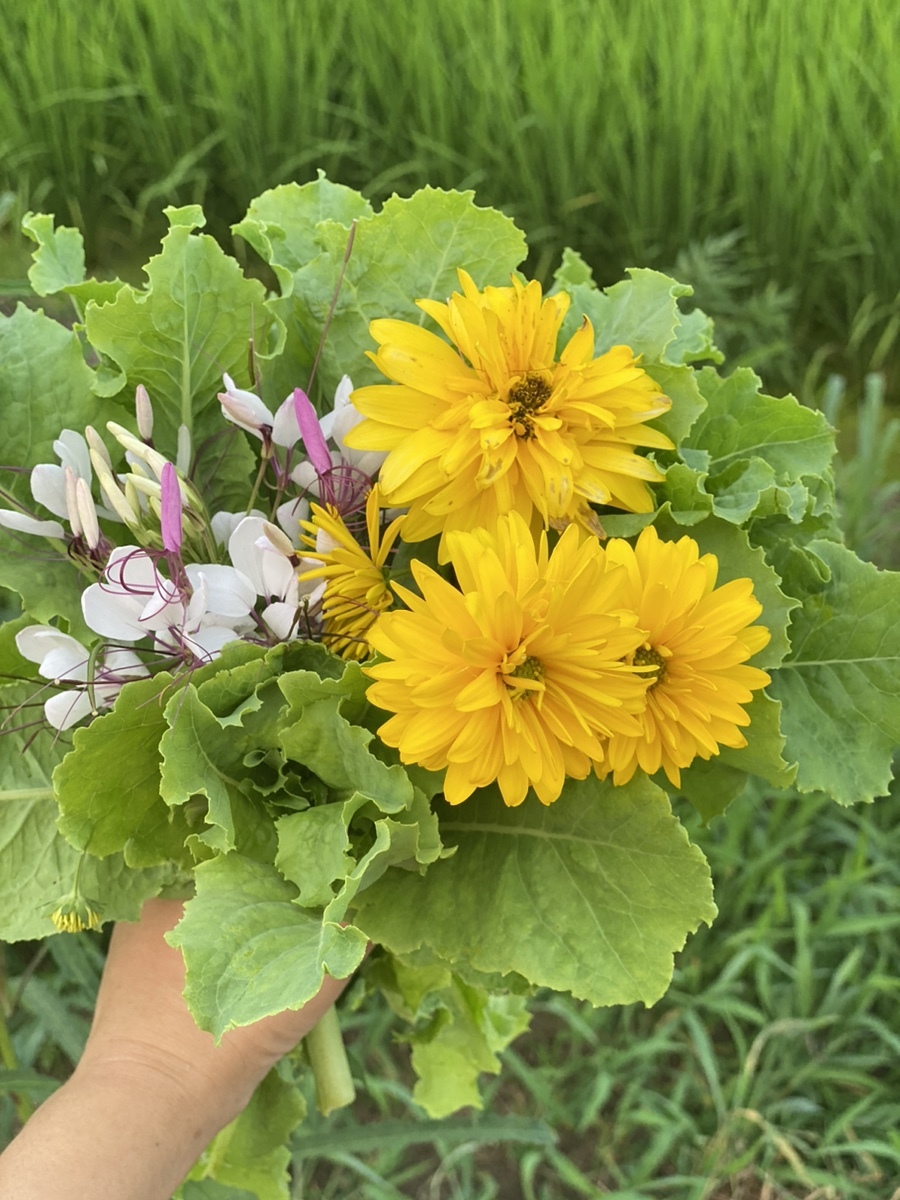 밖으로 나오자마자 눈길을 사로잡는 이 노란 꽃, 키가 엄청 커서 기둥처럼 묶어놓으셨길래 뭔가 궁금했는데 삼잎국화꽃이라고 한다. 요 어린잎 쌈으로도 나물로도 많이 먹었구만 꽃이 이렇게나 예쁜지 몰랐다. 홀딱반함.