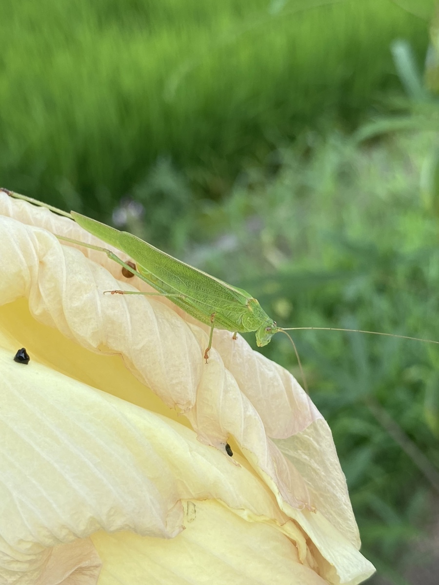 닥종이를 만드는 닥풀의 꽃에서 색도 고운 메뚜기를 만났다. 게다가 알을 낳는 장면까지 목격했다. 갈색의 동그란 알 ㅎㅎ 메뚜기가 알 낳는거 본 적 있는 사람 손?? 자랑하고 싶은 경험이다.