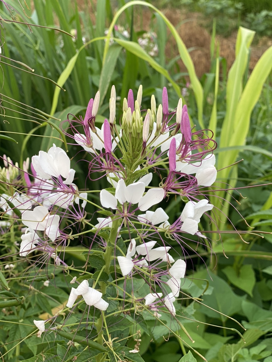 자주감자는 자주꽃이, 흰감자는 흰꽃이 피는데 흰가지는 꽃은 보라색이라 개성있었다. 일반 가지에 비해 분홍에 가까운 여린 색이긴 하다. 맛은 일반가지와 똑같다고 한다. 보라색이 아니니 안토시아닌은 없겠지? 대신 사포닌이 있으려나? ㅎㅎ